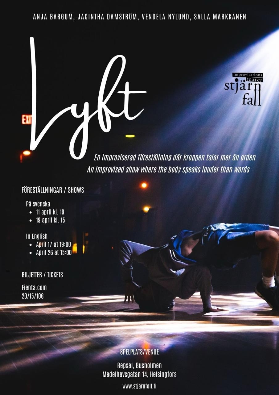 Stjärnfall presenterar improteater med inslag av parakrobatik och dans, samtidigt som musiken är en väsentlig del.